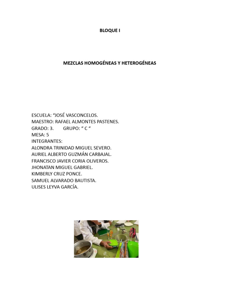 mezclas, se pudo observar que conociendo el tipo de mezcla ( homogénea y