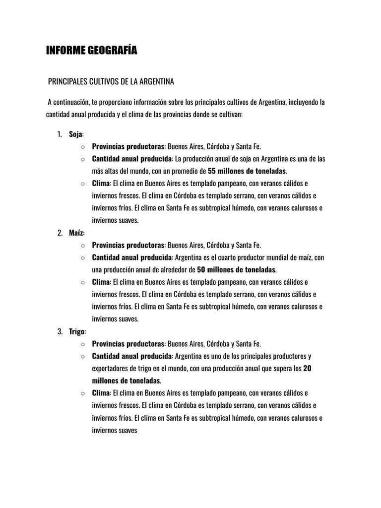 A continuación, te proporciono información sobre los principales cultivos de Argentina, incluyendo la