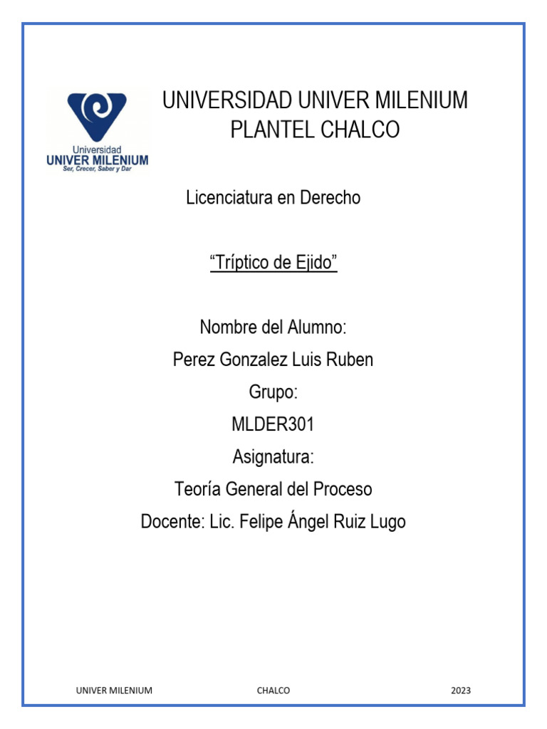 En el siguiente tríptico se verá los elementos más importantes sobre el Ejido, ya que este