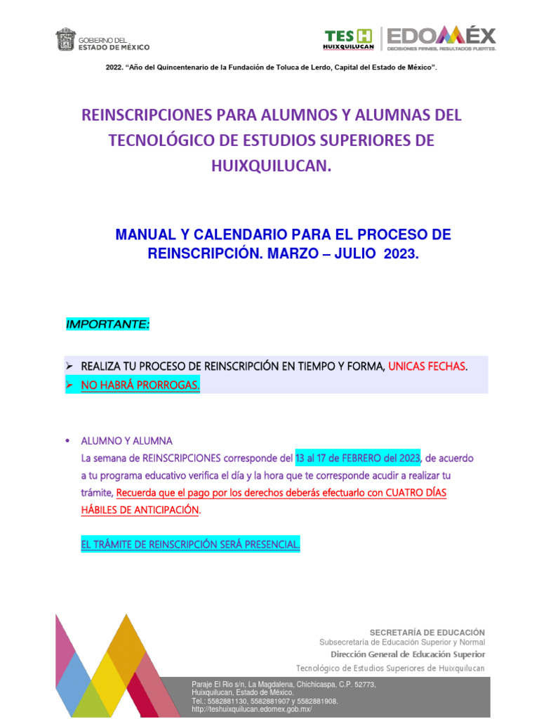 Reinscripción. de semestre, etc.