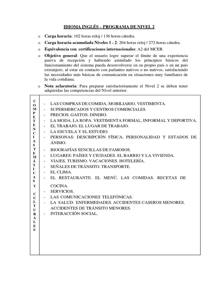 IDIOMA INGLÉS – PROGRAMA DE NIVEL 2
