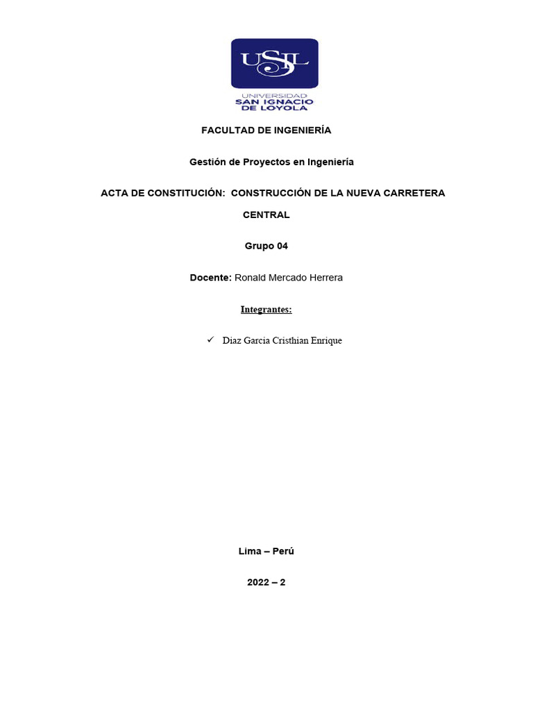 ACTA DE CONSTITUCIÓN: CONSTRUCCIÓN DE LA NUEVA CARRETERA