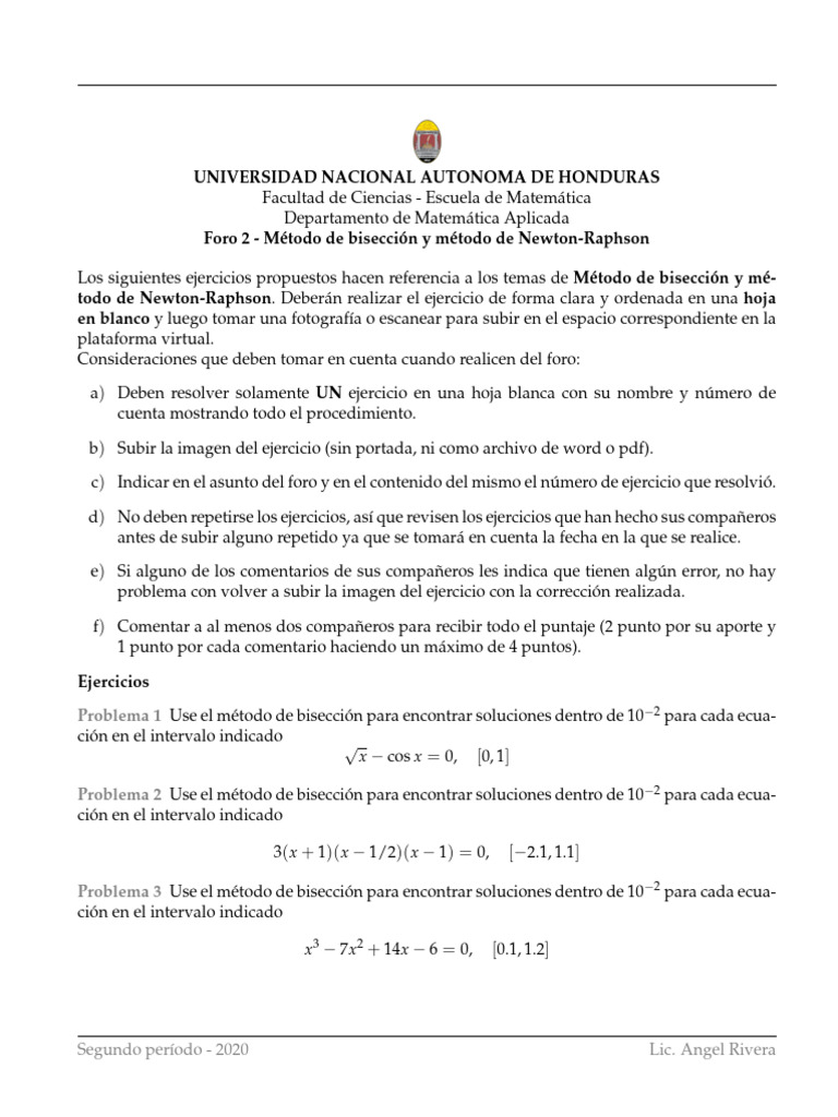 Foro 2 - Método de bisección y método de Newton-Raphson