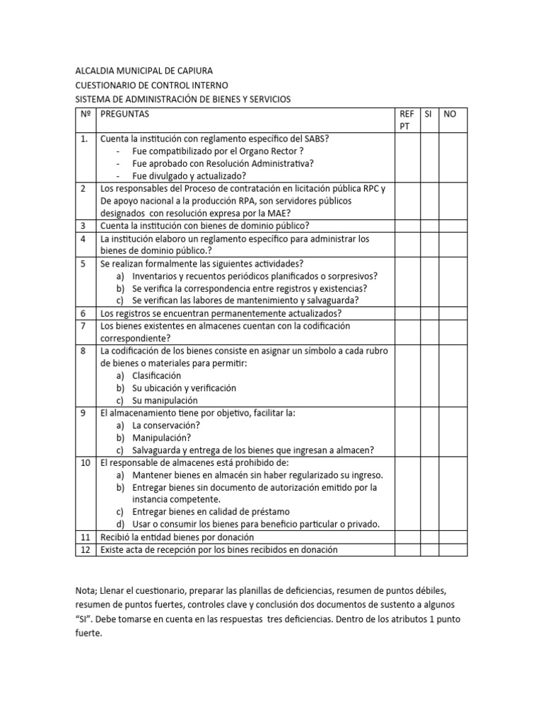 Nota; Llenar el cuestionario, preparar las planillas de deficiencias, resumen de puntos débiles,