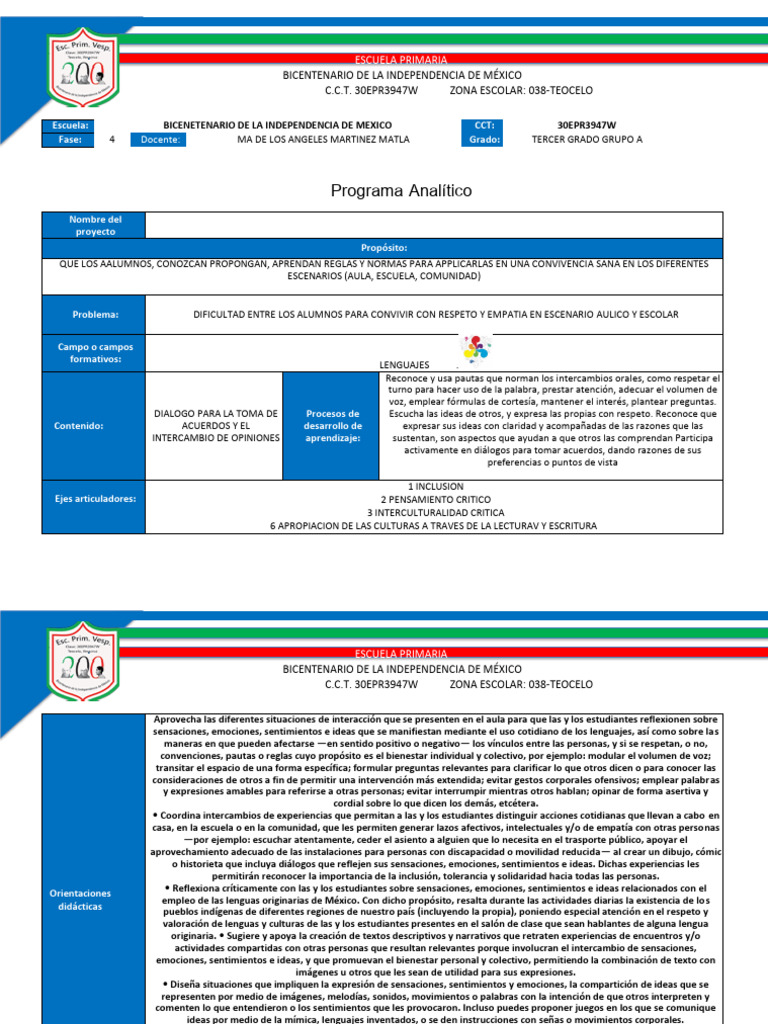 Escuela: BICENETENARIO DE LA INDEPENDENCIA DE MEXICO CCT: 30EPR3947W
