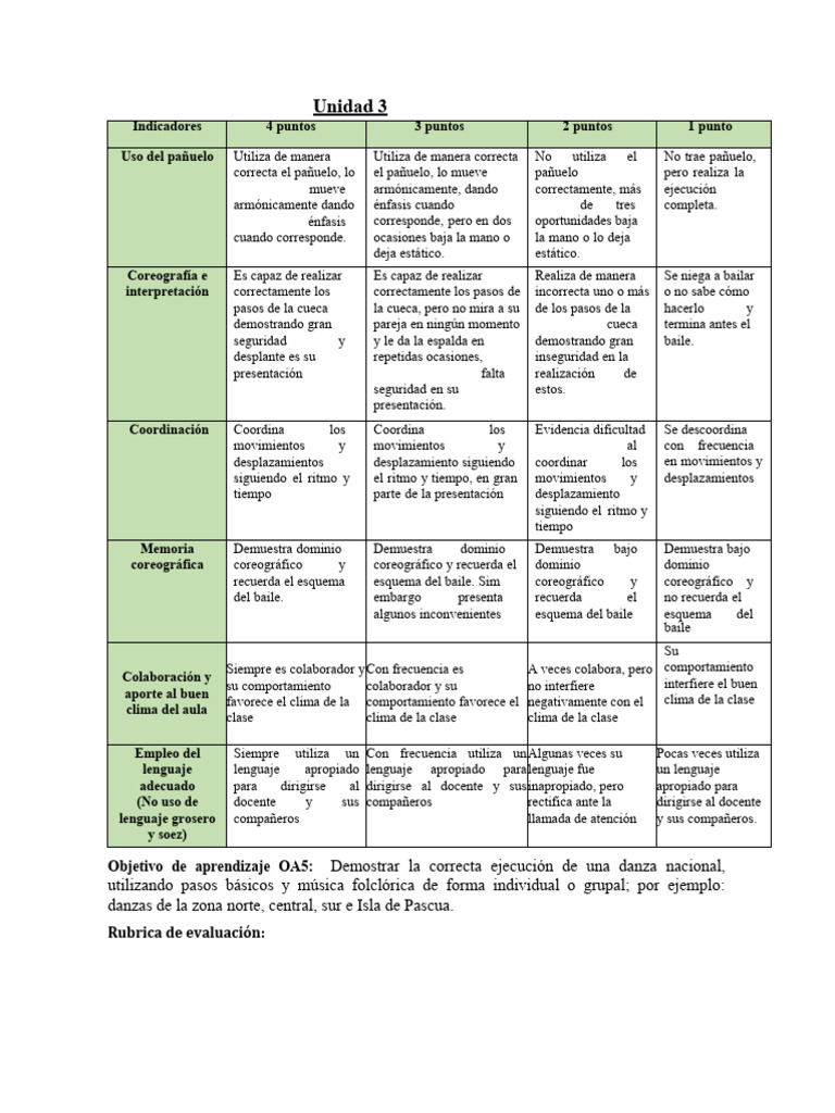 Objetivo de aprendizaje OA5: Demostrar la correcta ejecución de una danza nacional,