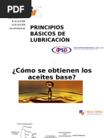 Principales Tipos de Aditivos: 1. Inhibidores de Oxidacin 2. Agentes Anti-Espumantes 3. Inhibidores de Herrumbre y Corrosin 4. Dispersantes y Detergentes 5. Aditivos para Extrema Presin EP 6. Agentes contra Desgaste 7. Depresores del Punto de Escurrimiento Los Inhibidores de Oxidacin se usan para ayudar a los aceites a resistir la aceleracin del proceso de Oxidacin a altas temperaturas y evitar la formacin de depsitos perjudiciales de barros y barnices, as como aumento de la Viscosidad del aceite. Los Agentes Anti-Espumantes sirven para reunir y expulsar las burbujas de aire que ms frecuentemente se encuentran en los sistemas hidrulicos. Los Inhibidores de Herrumbre y Corrosin evitan que el agua y las materias corrosivas traspongan la pelcula lubricante y tomen contacto con el metal. Los Dispersantes mantienen las partculas carbonosas en suspensin dentro del aceite para evitar que se depositen en las partes metlicas circundantes, mientras que los Detergentes son agregados a los aceites para evitar la eventual formacin de barros y barnices y lograr mantener limpios los metales. Los aditivos para Extrema Presin, llamados EP reaccionan qumicamente en las superficies lubricadas para formar una pelcula protectora que reduce el contacto de metal con metal, an a muy altas presiones y temperaturas. Estos aditivos frecuentemente son usados en grasas y aceites para darles la suficiente resistencia para soportar cargas muy altas. Los Agentes contra Desgaste se agregan a los aceites para permitirles mantener una pelcula lubricante fuerte y deslizante que resista las grandes presiones. Los Depresores del Punto de Escurrimiento se agregan a los aceites para rebajar dichos puntos, ayudndolos a resistir su espesamiento a bajas temperaturas. GRASAS LUBRICANTES Las grasas estn divididas en categoras generales de acuerdo con el tipo de jabn qumico que se use como base. La categora ms difundida es la Grasa de Jabn de Litio, una grasa de usos mltiples, que posee un alto Punto de Goteo y es de aplicacin dentro de una amplia gama de temperaturas. Una segunda categora de Grasas es la de Jabn de Calcio. Una de sus principales ventajas es su gran estabilidad en presencia de agua, aunque tienen un Punto de Goteo relativamente bajo. Una tercera categora es la de Grasas de Jabn de Sodio. Puede ser usada a temperaturas relativamente altas y su resistencia al agua es baja. Existen, adems, un nmero de grasas que se elaboran con frmulas especiales de acuerdo con sus usos especficos. Las de Extrema Presin EP y las de Altas Temperaturas son ejemplos de esta categora.