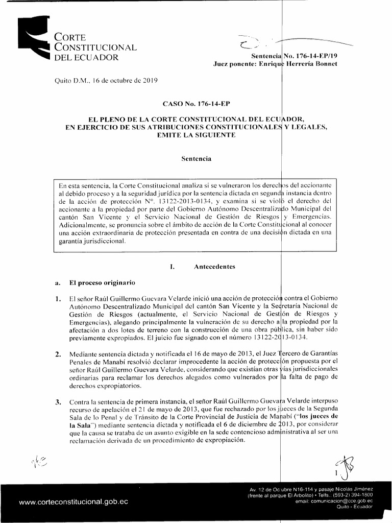Riesgos y Emergencias y al juez del Juzgado Tercero de Garantías Pe r a es de Manabí que