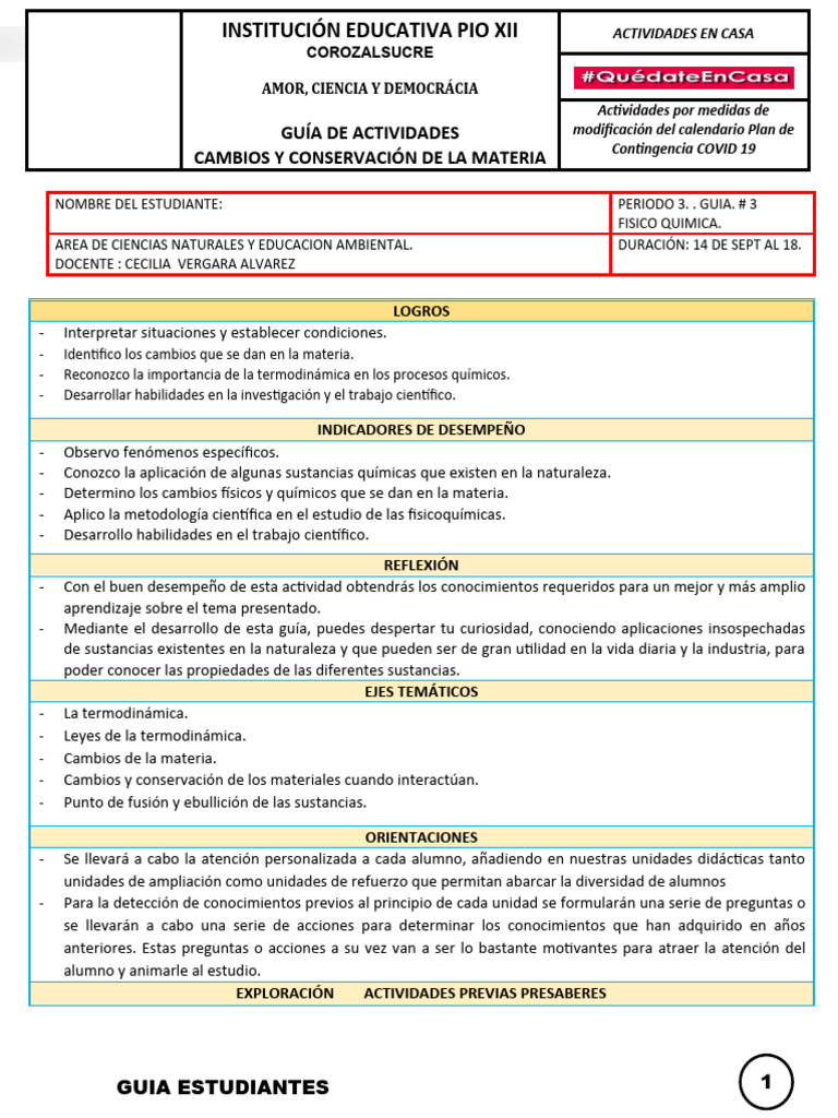 INSTITUCIÓN EDUCATIVA PIO XII ACTIVIDADES EN CASA