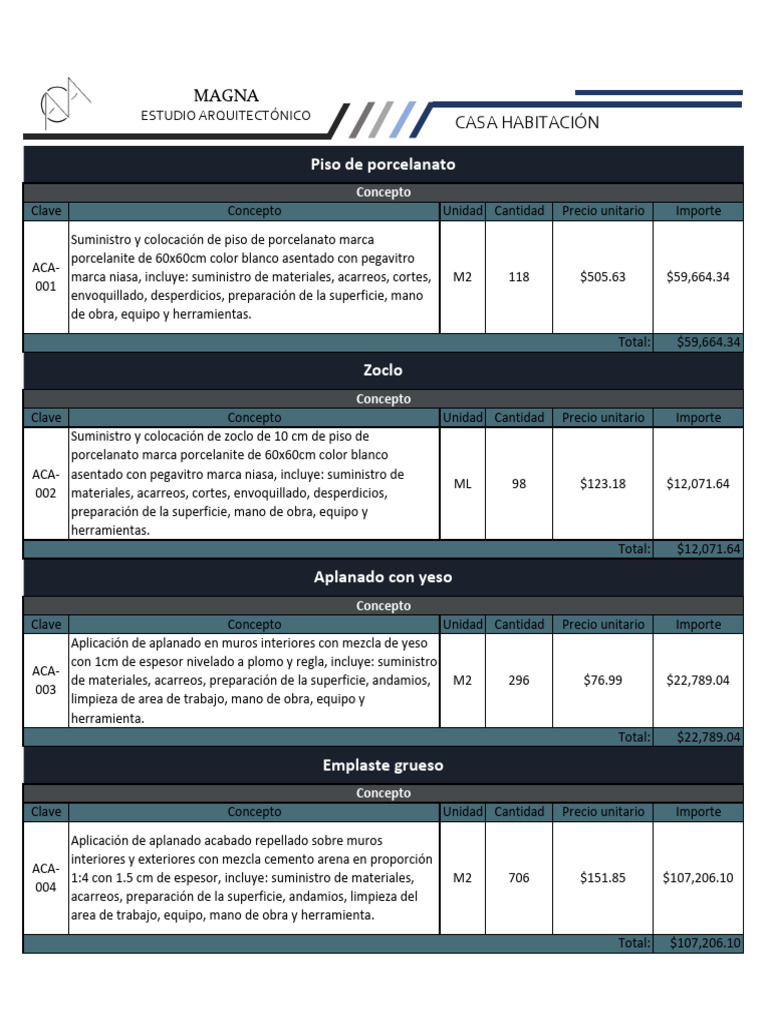 de materiales, acarreos, preparación de la superficie, andamios, M2 296 $76.99 $22,789.04