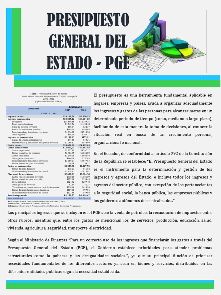 Los principales ingresos que se incluyen en el PGE son: la venta de petróleo, la recaudación de impuestos entre