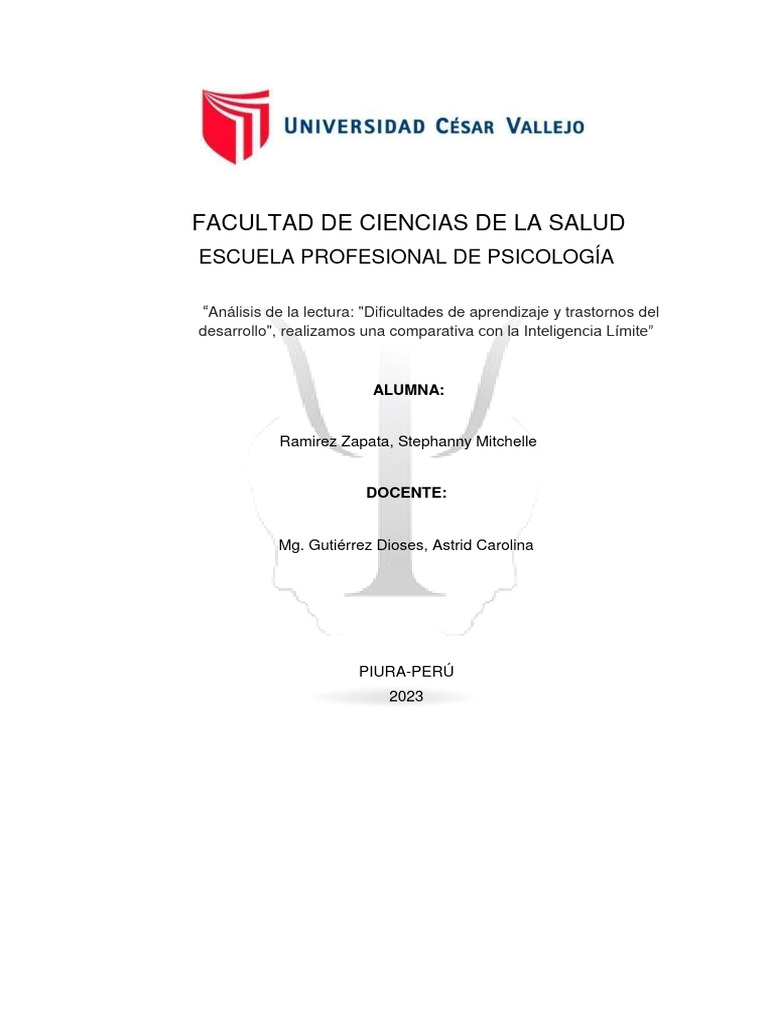 “Análisis de la lectura: "Dificultades de aprendizaje y trastornos del