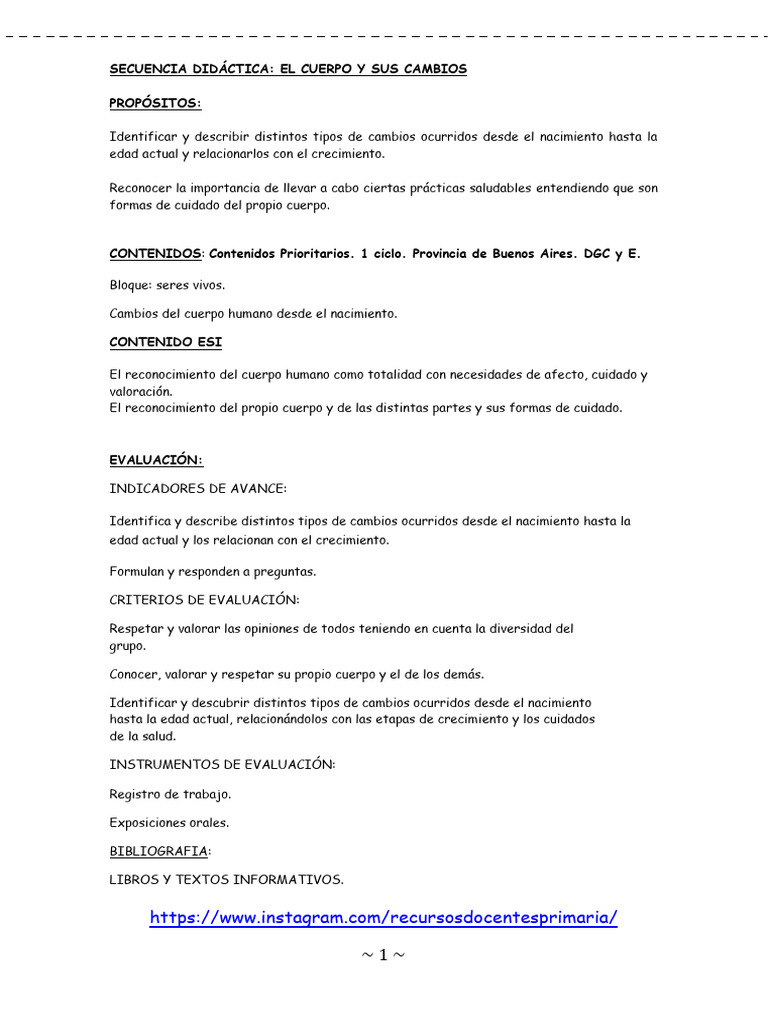 SECUENCIA DIDÁCTICA: EL CUERPO Y SUS CAMBIOS