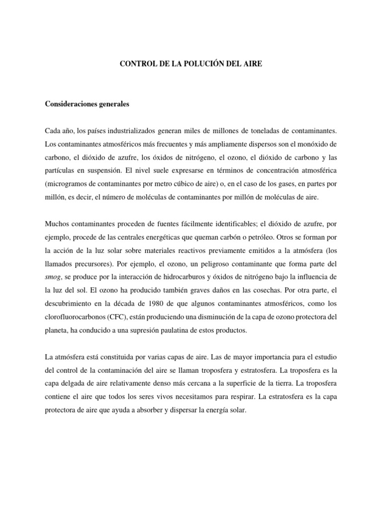 del control de la contaminación del aire se llaman troposfera y estratosfera. La troposfera es la