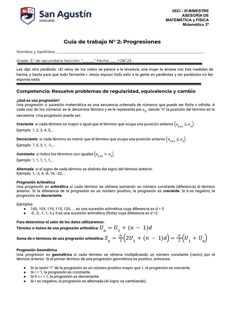 anterior. Si la diferencia de la progresión es un número positivo, la progresión es creciente. Si d es negativo, la