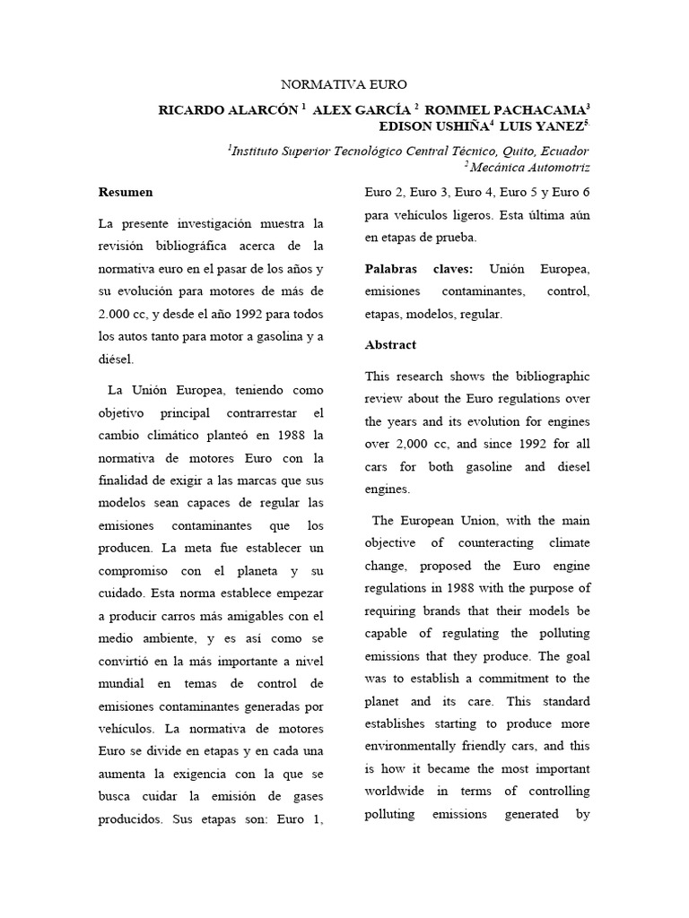 1, Euro 2, Euro 3, Euro 4, Euro 5 and ensayos normalizado (Pérez, 2023).