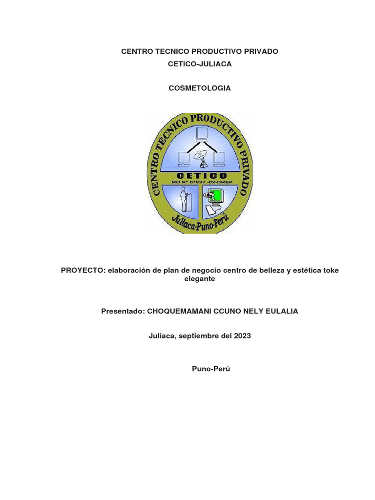 PROYECTO: elaboración de plan de negocio centro de belleza y estética toke
