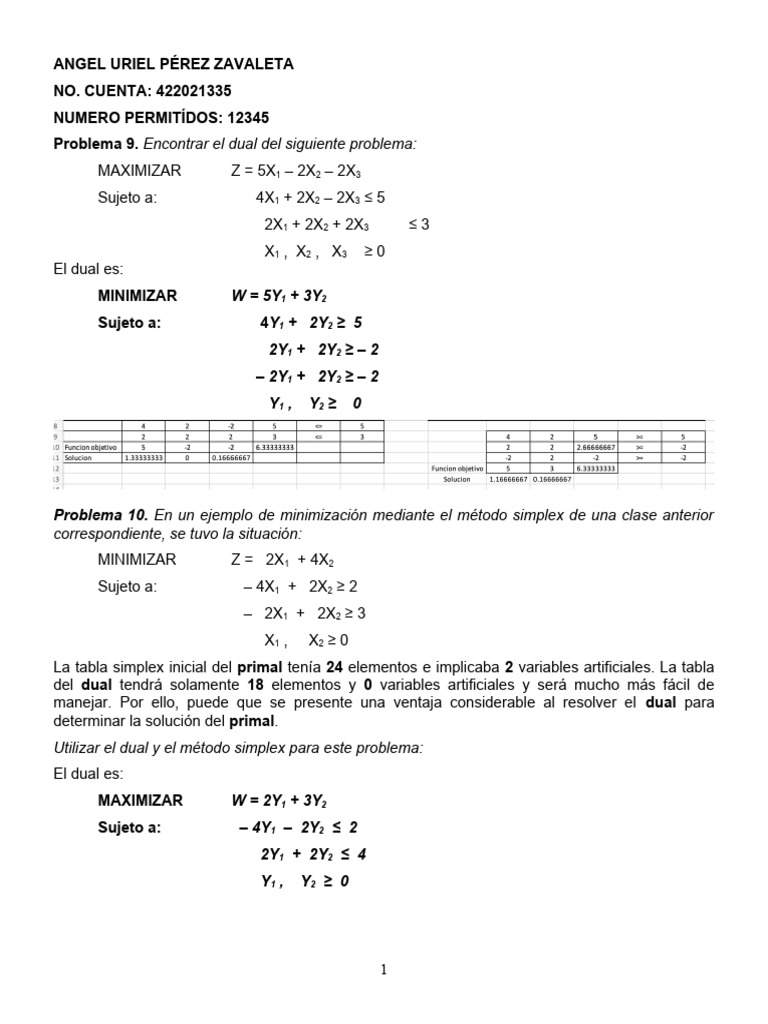 Problema 10. En un ejemplo de minimización mediante el método simplex de una clase anterior