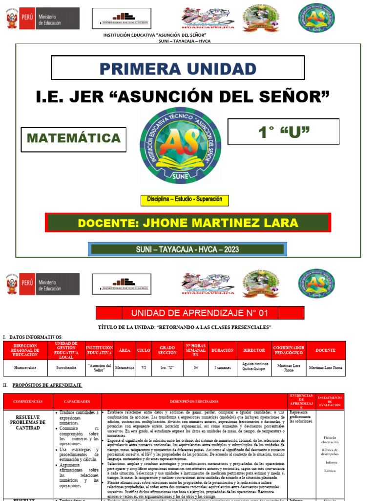 Huancavelica Surcubamba Matemática VI 1ro. “U” 04 5 semanas Quilca Quispe Martínez Lara Jhone