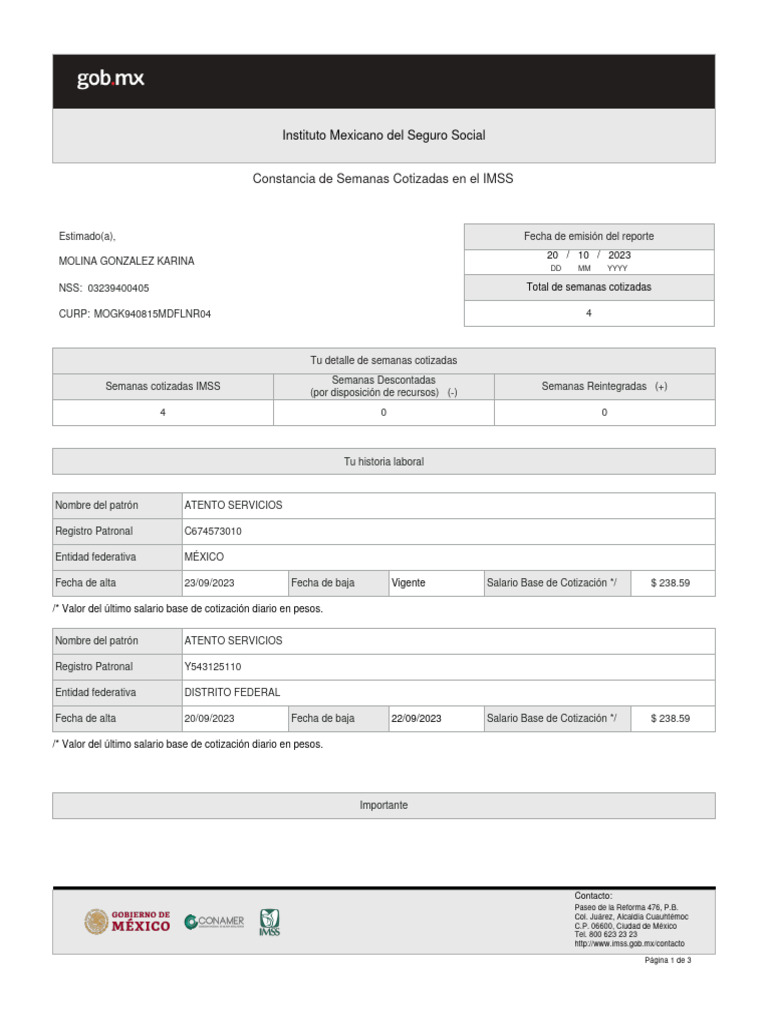 Asegurado:KARINA|Folio:1697853941024994871048|Número total de semanas cotizadas:4||