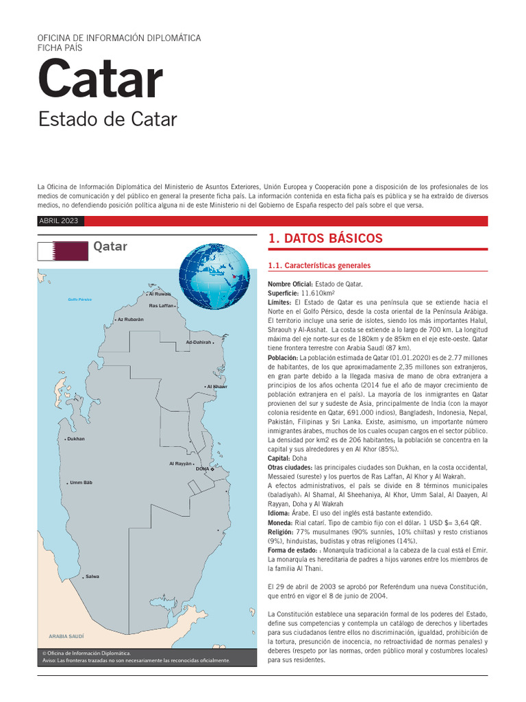 - Acuerdo de Cooperación en materia de Seguridad. Página Web: www.exteriores.gob.es/Embajadas/DOHA/es/Paginas/inicio.aspx