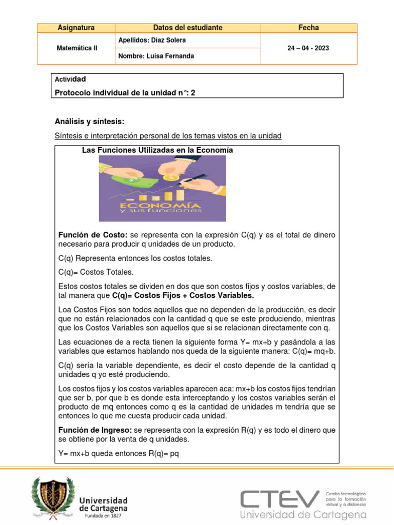 Función de Costo: se representa con la expresión C(q) y es el total de dinero