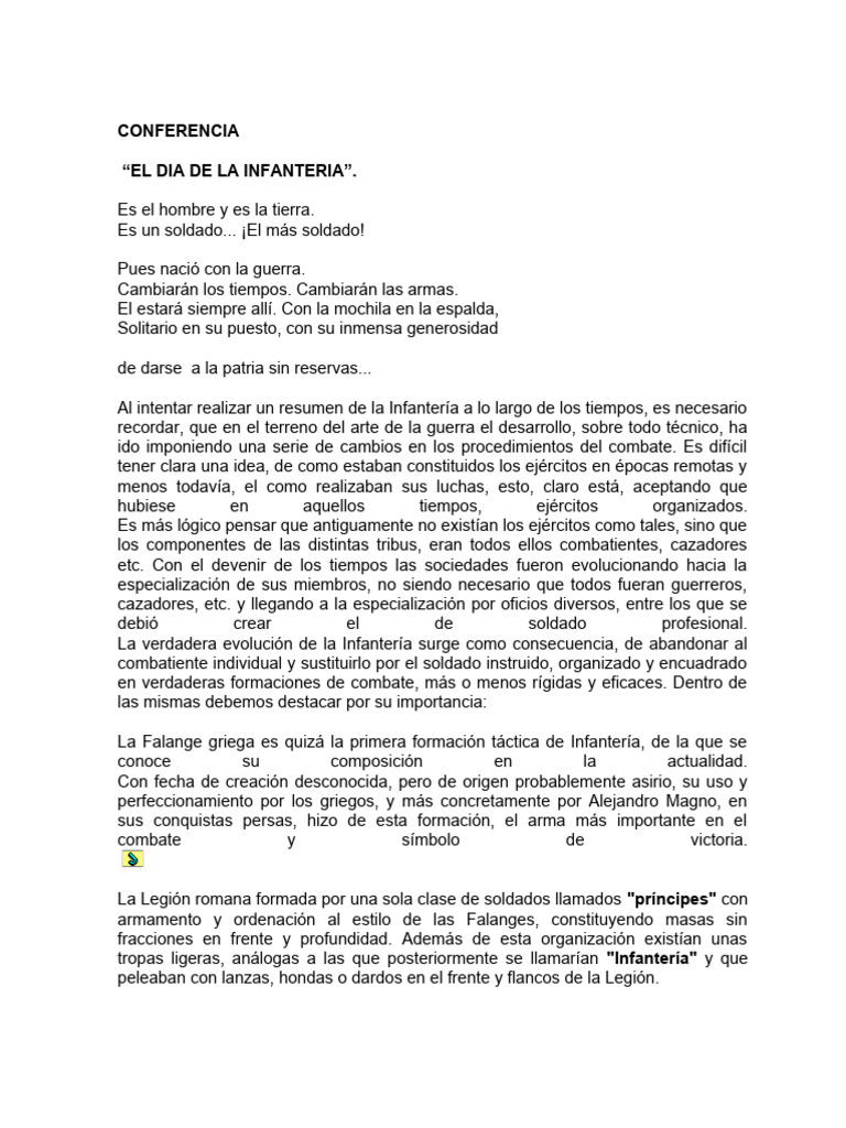 Al intentar realizar un resumen de la Infantería a lo largo de los tiempos, es necesario