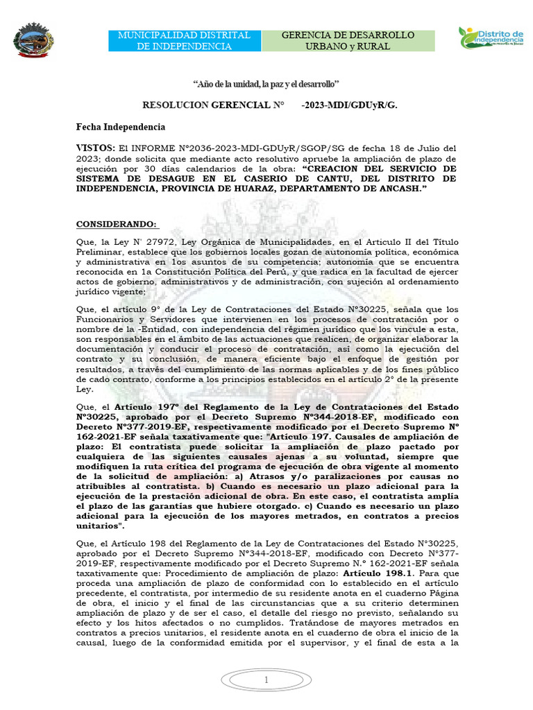 RESOLUCION GERENCIAL N° -2023-MDI/GDUyR/G.
