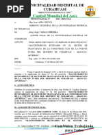 de obra Ing. Wilder Luis Oncoy Quijano, informa al Representante Legal del Consorcio