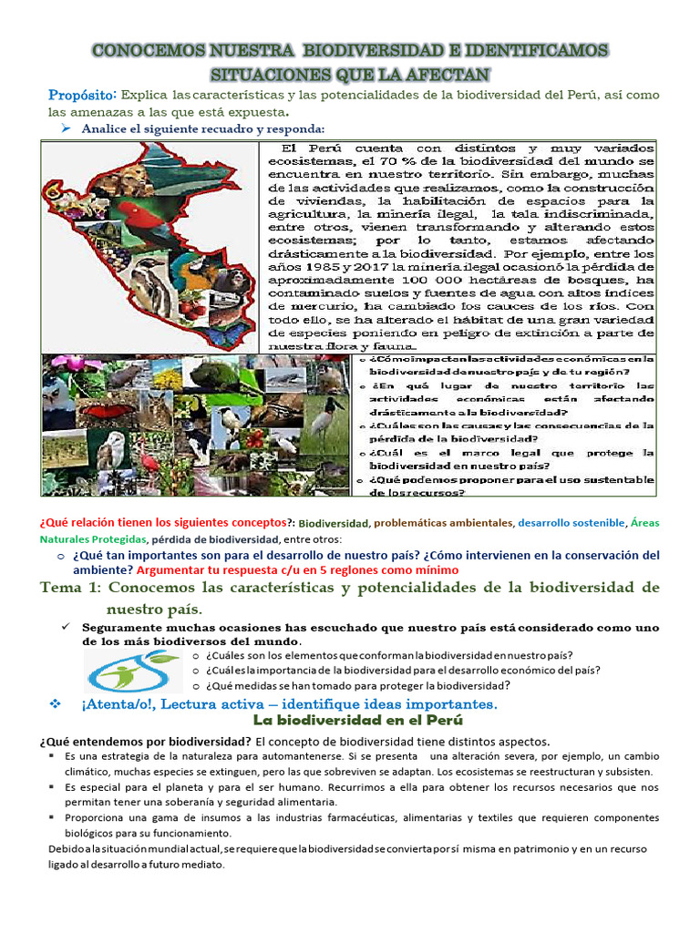 Propósito: Explica las características y las potencialidades de la biodiversidad del Perú, así como