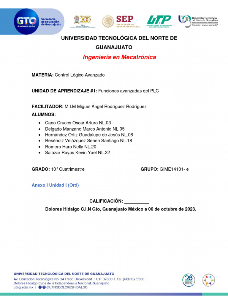 UNIDAD DE APRENDIZAJE #1: Funciones avanzadas del PLC