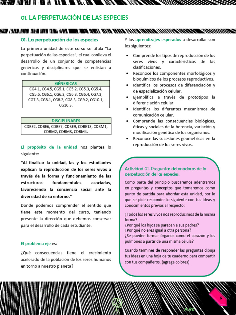 01. La perpetuación de las especies Y los aprendizajes esperados a desarrollar son