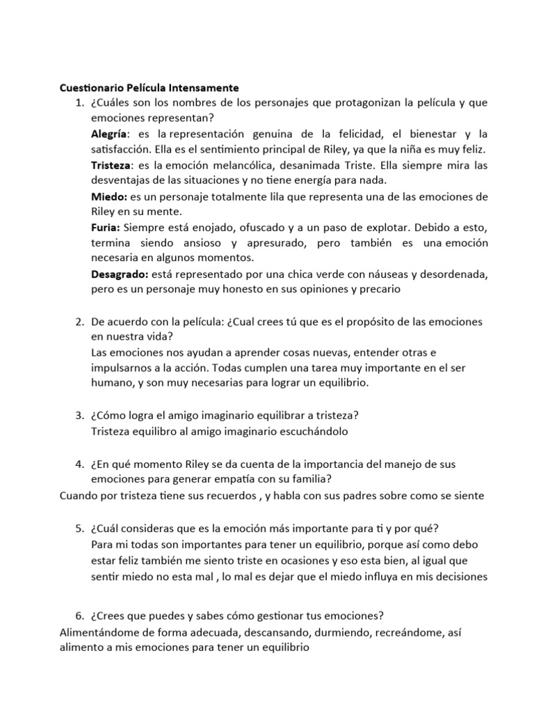 Cuestionario Película Intensamente