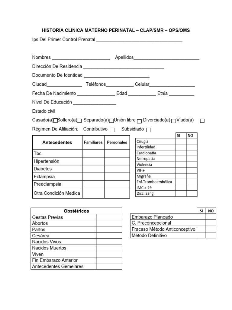 HISTORIA CLINICA MATERNO PERINATAL – CLAP/SMR – OPS/OMS