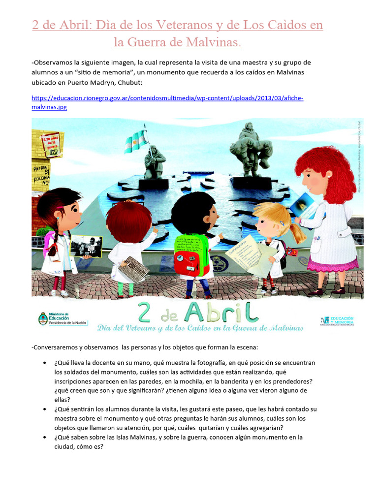 alumnos a un “sitio de memoria”, un monumento que recuerda a los caídos en Malvinas
