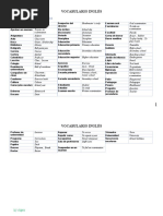 las palabras en Inglés con su significado en Español correspondiente a cada unidad.