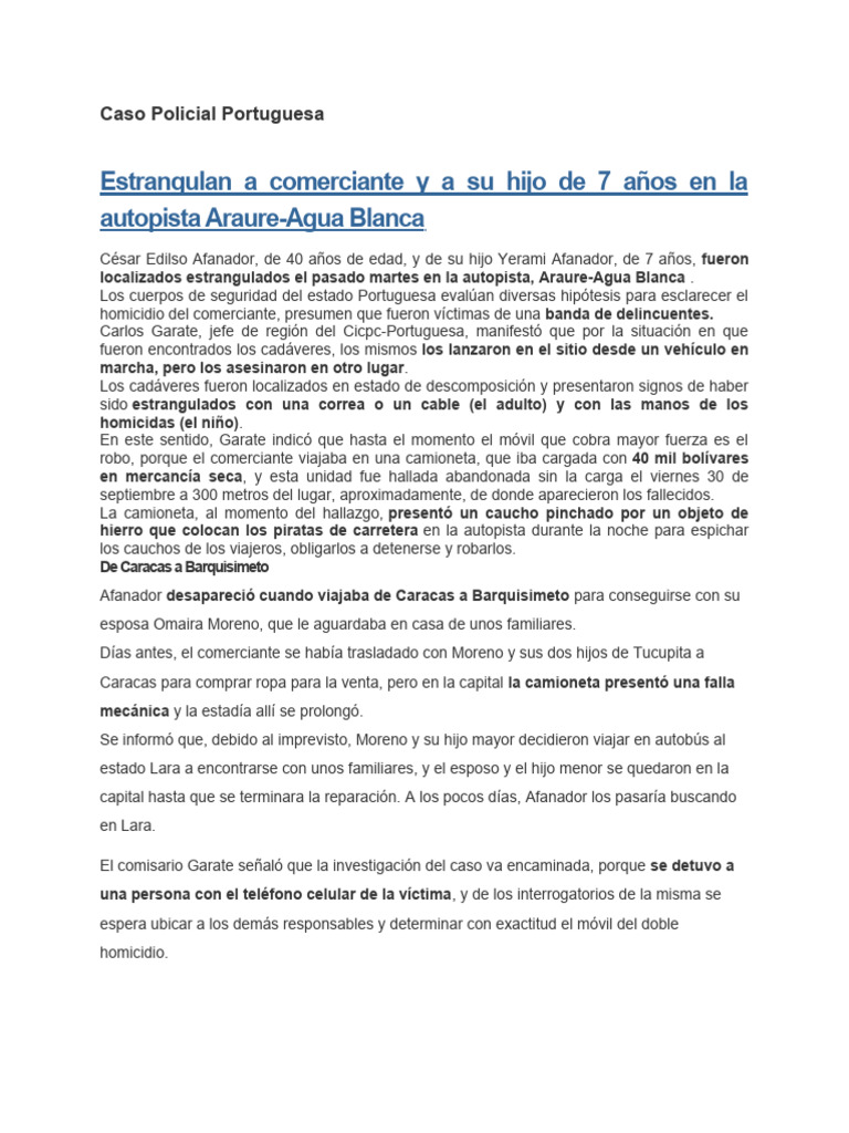 localizados estrangulados el pasado martes en la autopista, Araure-Agua Blanca .