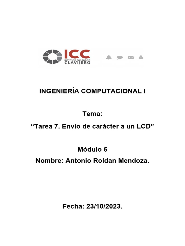 “Tarea 7. Envío de carácter a un LCD”