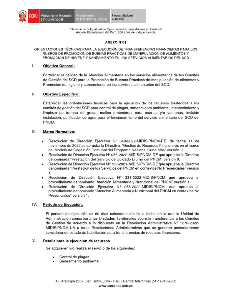 • Resolución de Dirección Ejecutiva N° 056-2022-MIDIS/PNCM-DE que aprueba la Directiva