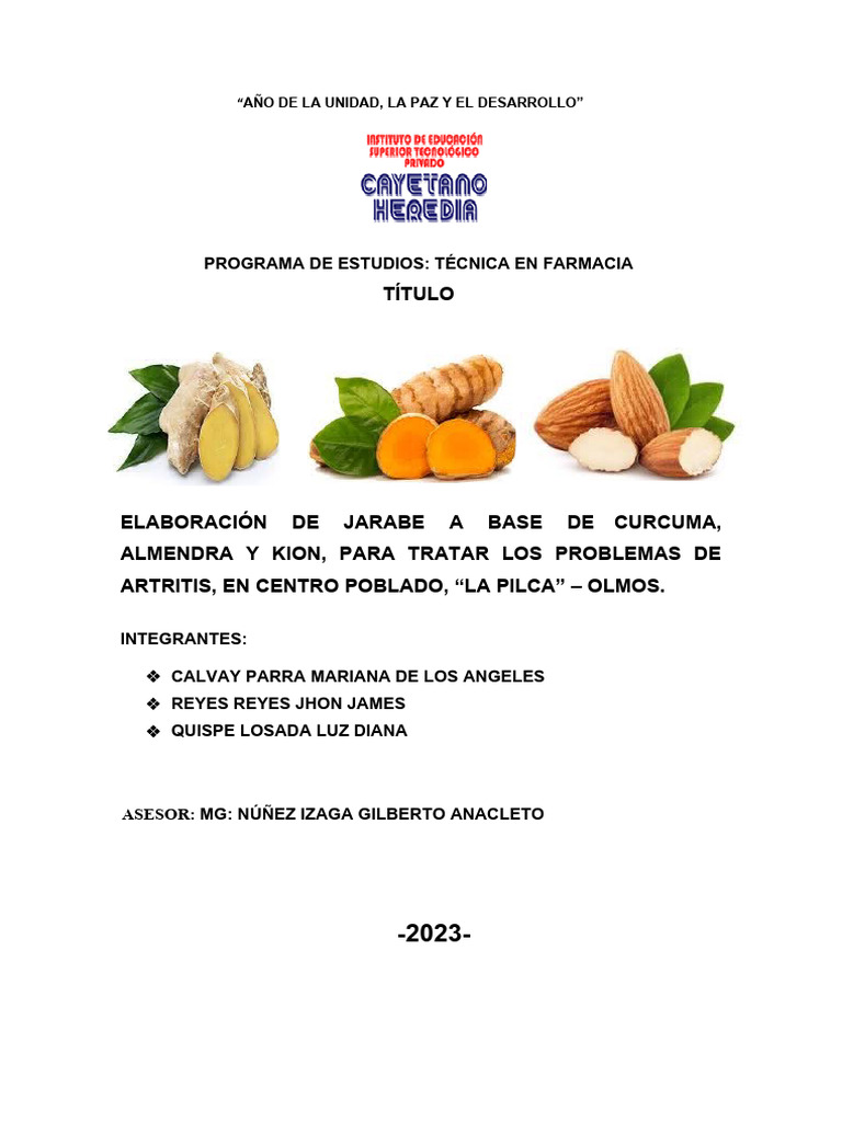 Elaborar jarabe a base de cúrcuma, almendra y kion, para tratar los problemas de