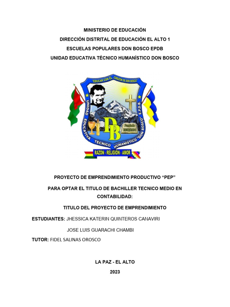 PROYECTO DE EMPRENDIMIENTO PRODUCTIVO “PEP”