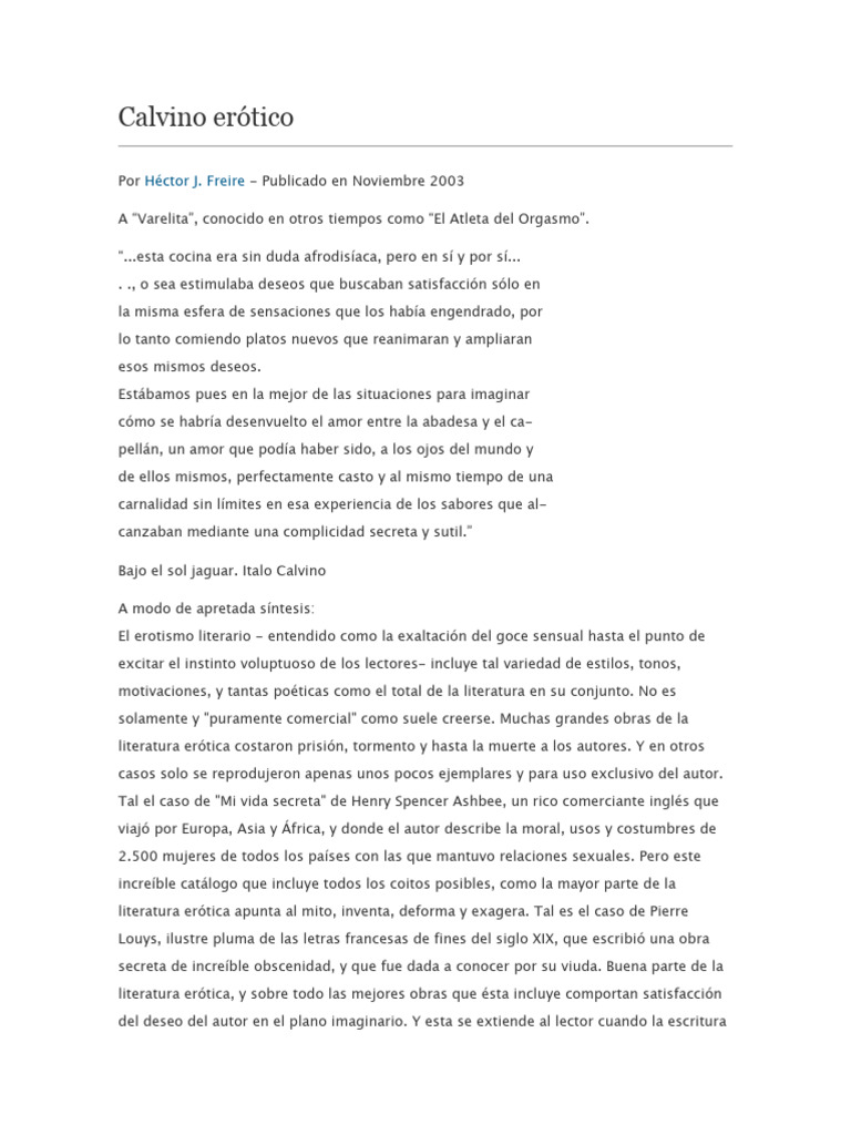 Punto y aparte (1970) Calvino reflexiona sobre la cuestión de lo erótico y su relación con