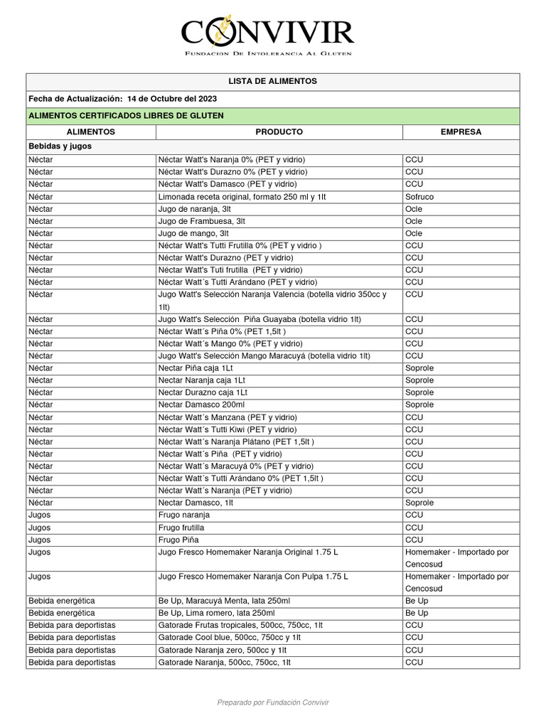 ALIMENTOS CERTIFICADOS LIBRES DE GLUTEN