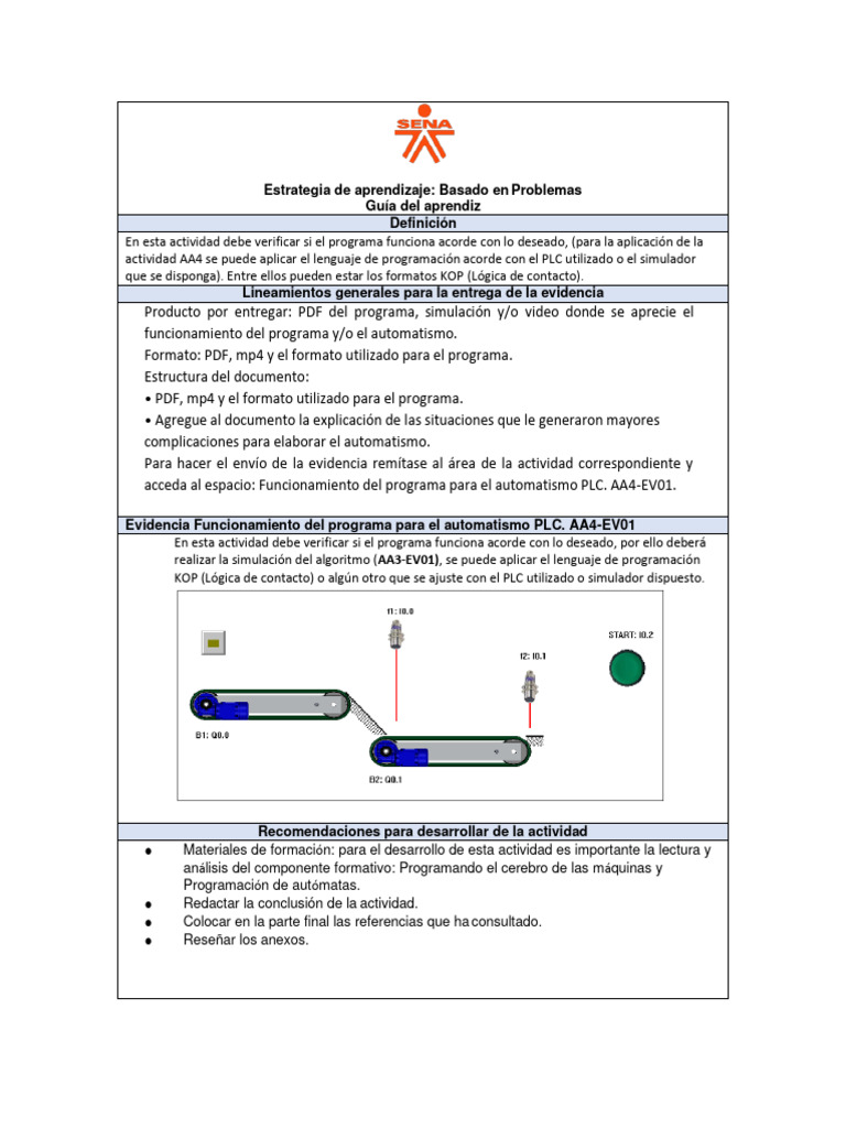actividad AA4 se puede aplicar el lenguaje de programación acorde con el PLC utilizado o el simulador