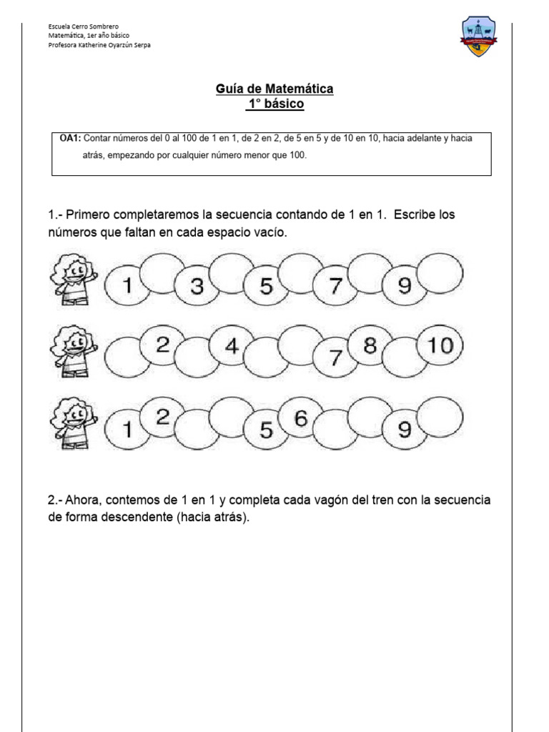 1.- Primero completaremos la secuencia contando de 1 en 1. Escribe los
