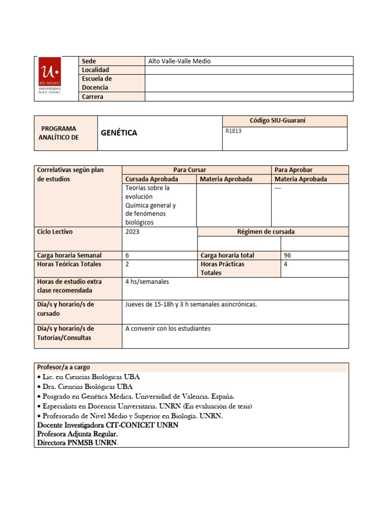 • Profesorado de Nivel Medio y Superior en Biología. UNRN.
