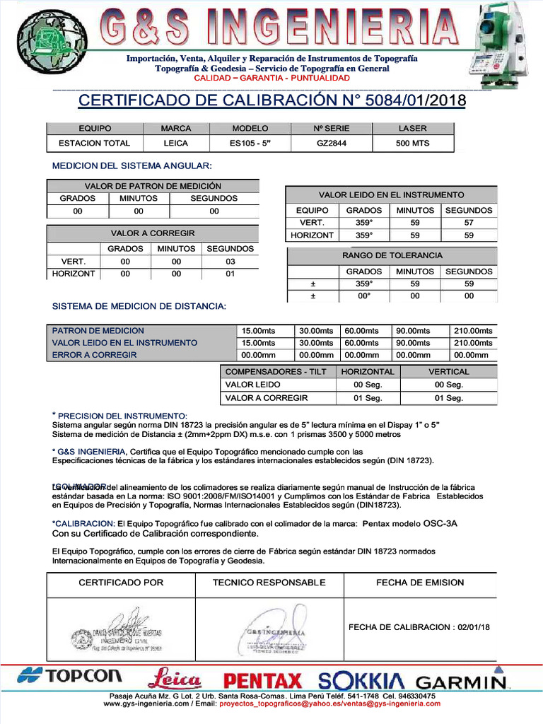 en Equipos de Precisión y Topografía, Normas Internacionales Establecidos según (DIN18723).
