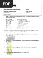 EVALUACION NUMERICA DE EXPRESIONES ALGEBRAICAS