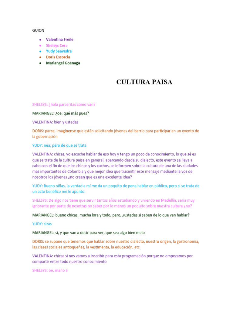 VALENTINA: bueno chicas podría empezar yo por decir que el dialecto paisa, Al igual que el rolo, es