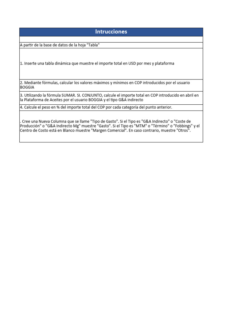 . Cree una Nueva Columna que se llame "Tipo de Gasto". Si el Tipo es "G&A Indirecto" o "Coste de
